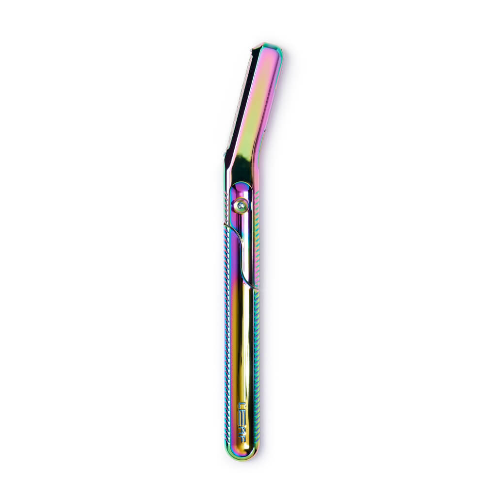 Der Leaf Dermaplaner ist ein vollständig aus Metall gefertigtes Werkzeug in Form eines Rasiermessers. Dank der patentierten, speziell entwickelten Schutzleiste mit feinen Rillen (Blade Guard) verwendet er handelsübliche Rasierklingen – genauer gesagt deren Hälfte. Im Lieferumfang ist außerdem ein Präzisionsaufsatz (Precision Clip) enthalten, der auf die Klinge aufgesetzt wird, um deren Breite zu verringern und so ein äußerst präzises Werkzeug zur Augenbrauenkorrektur zu schaffen.